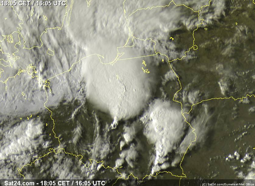 Zdjęcie satelitarne z 16:05 UTC (18:05 CEST) ukazujące m.in. bow echo